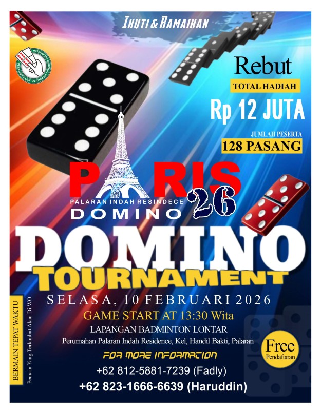 KALTIMNEWS.CO – Turnamen Domino yang digelar oleh Gardu 26 Paris Palaran dijadwalkan akan dilaksanakan pada Selasa, 10 Februari 2026 mendatang. Kegiatan ini tidak hanya menjadi ajang kompetisi komunitas, tetapi juga mencerminkan kuatnya dukungan politik-lokal dan kelembagaan terhadap pengembangan aktivitas positif masyarakat di tingkat kecamatan.